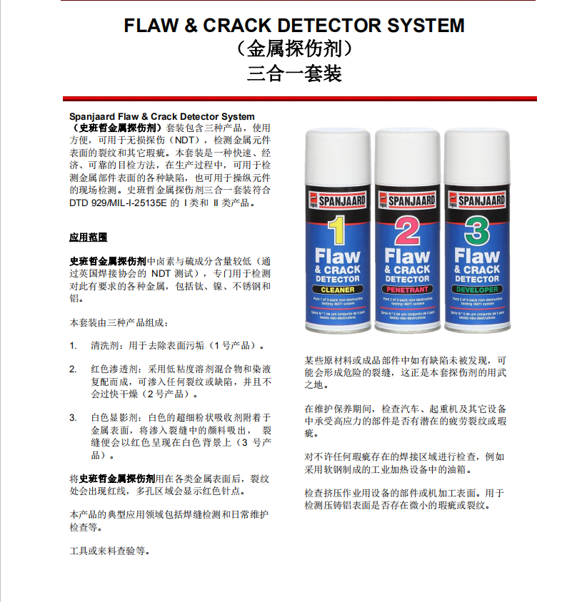 進(jìn)口Spanjaard Flaw amp Crack Detector System史班哲金屬探傷劑
