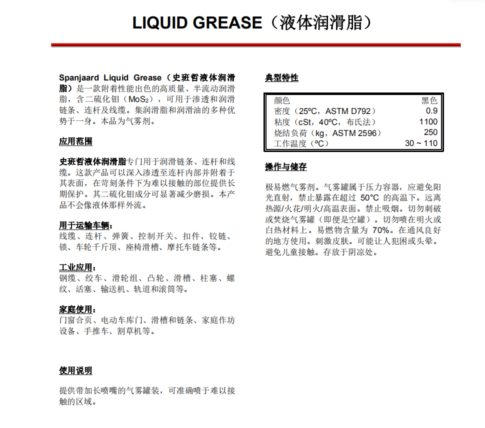 工業(yè)應(yīng)用Spanjaard Liquid Grease史班哲液體潤(rùn)滑脂噴劑