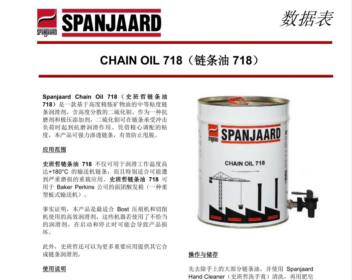 史班哲鏈條油718 Spanjaard Chain Oil 718高溫輸送機鏈條專用