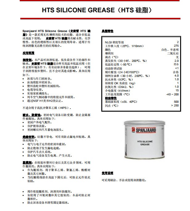 南非史班哲HTS Silicone Grease食品級HTS硅脂耐水防腐蝕潤滑脂