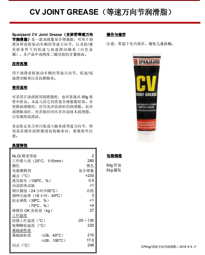 Spanjaard CV Joint Grease史班哲等速萬向節(jié)潤(rùn)滑脂抗磨軸承潤(rùn)滑