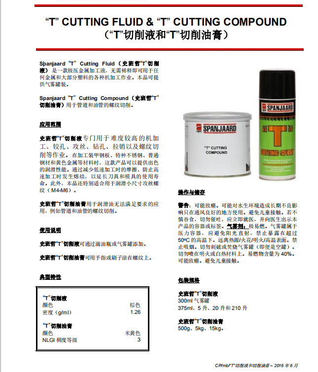 進口南非Spanjaard史班哲 T”切削液和“T”切削油膏油管螺紋切削