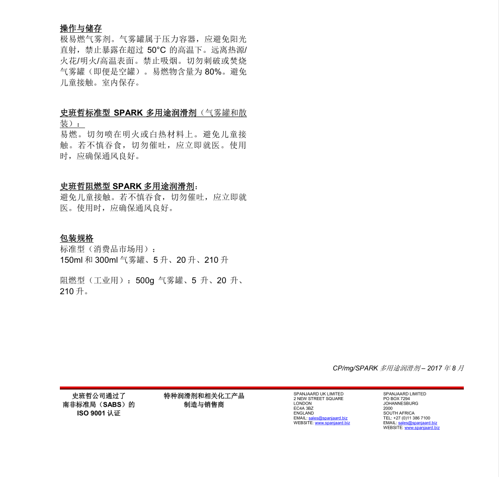南非Spanjaard Spark(史班哲SPARK多用途多功能潤滑噴劑)300ML
